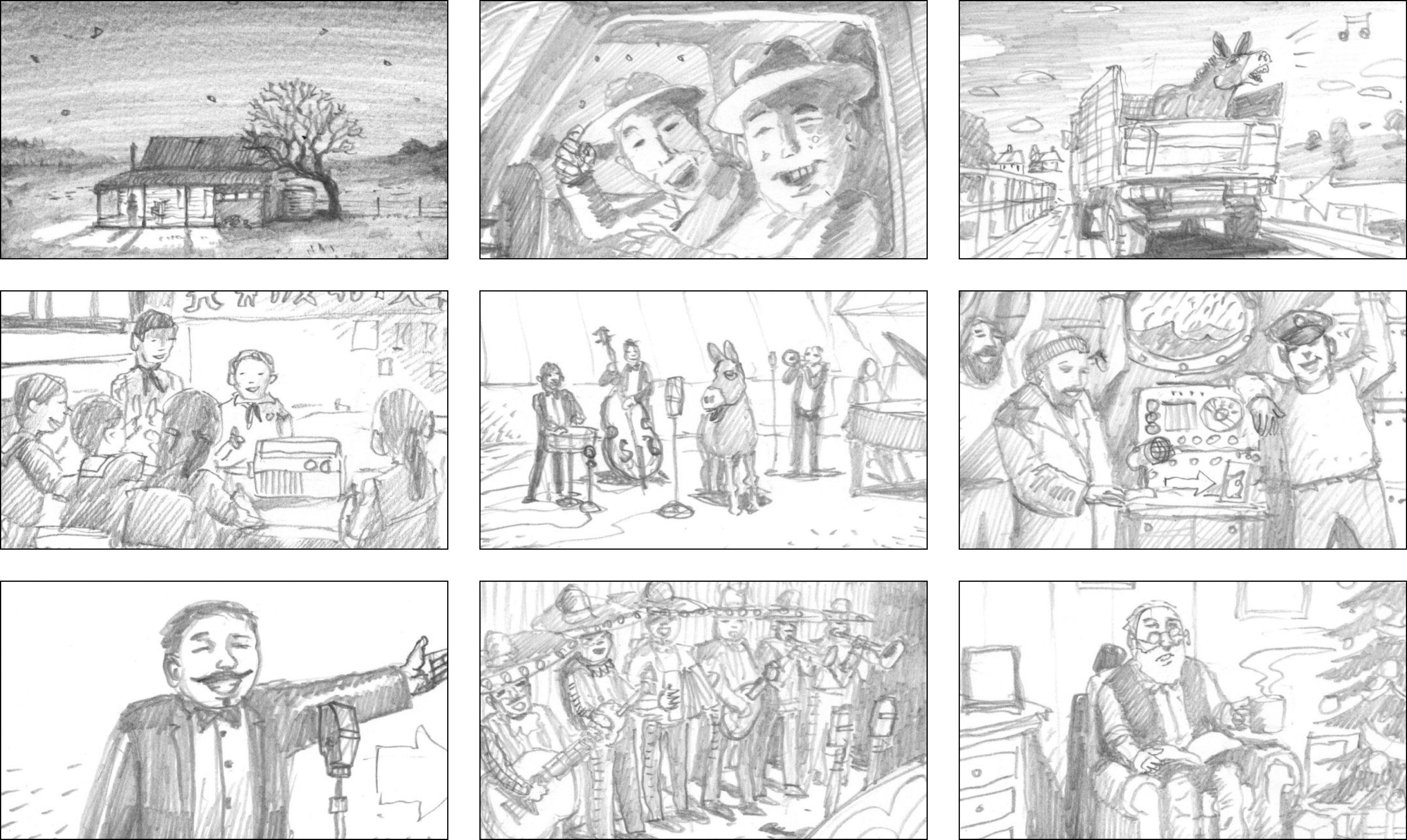 The donkey watches from the sidelines as the scene comes together. At that moment, an epiphany strikes – perhaps this glittering new life isn’t as fulfilling as it seemed. He longs for home. The irony is sharp: the very setting designed for family gatherings, where loved ones bond over the holidays, only amplifies his sense of emptiness. We needed to make that contrast unmistakable.”