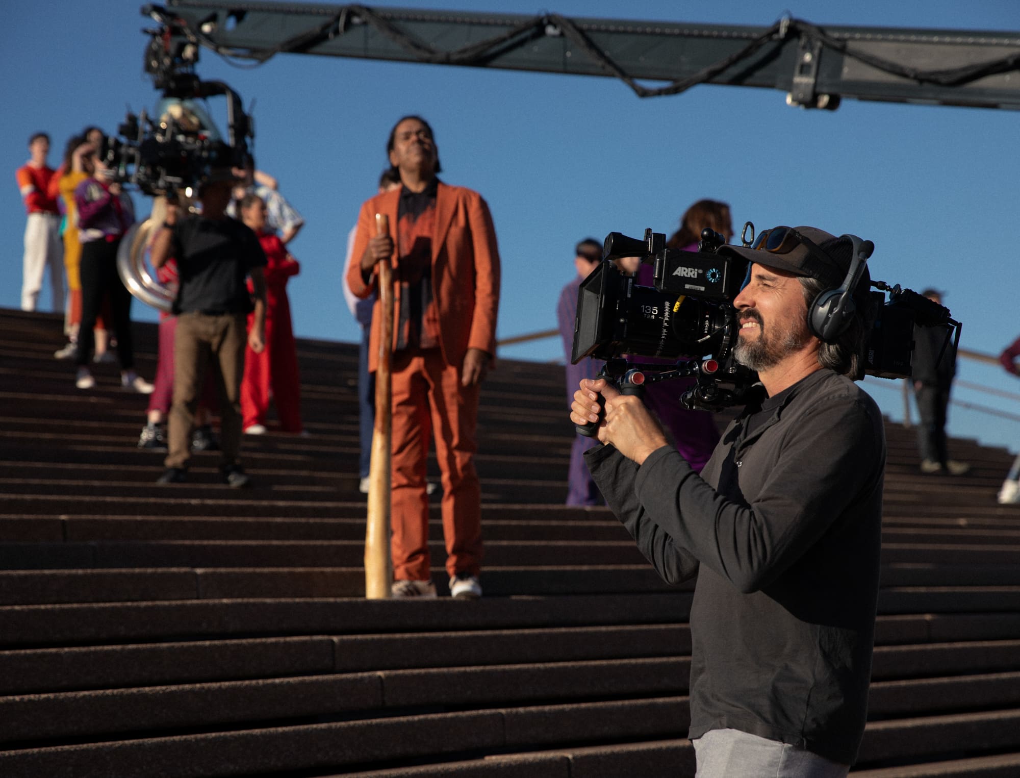 Director of Photography Stefan Duscio alongside Kim Gehrig spent time early on scouting the Sydney Opera House in detail. As Duscio shot stills and showed Kim different aspect ratios, she gravitated towards the squarer 1.43:1 format. With so much of the film composed around the building’s geometry, they chose to shoot on the Alexa Mini LF in open gate mode with spherical Panaspeeds, allowing a real importance to be placed on the architecture.